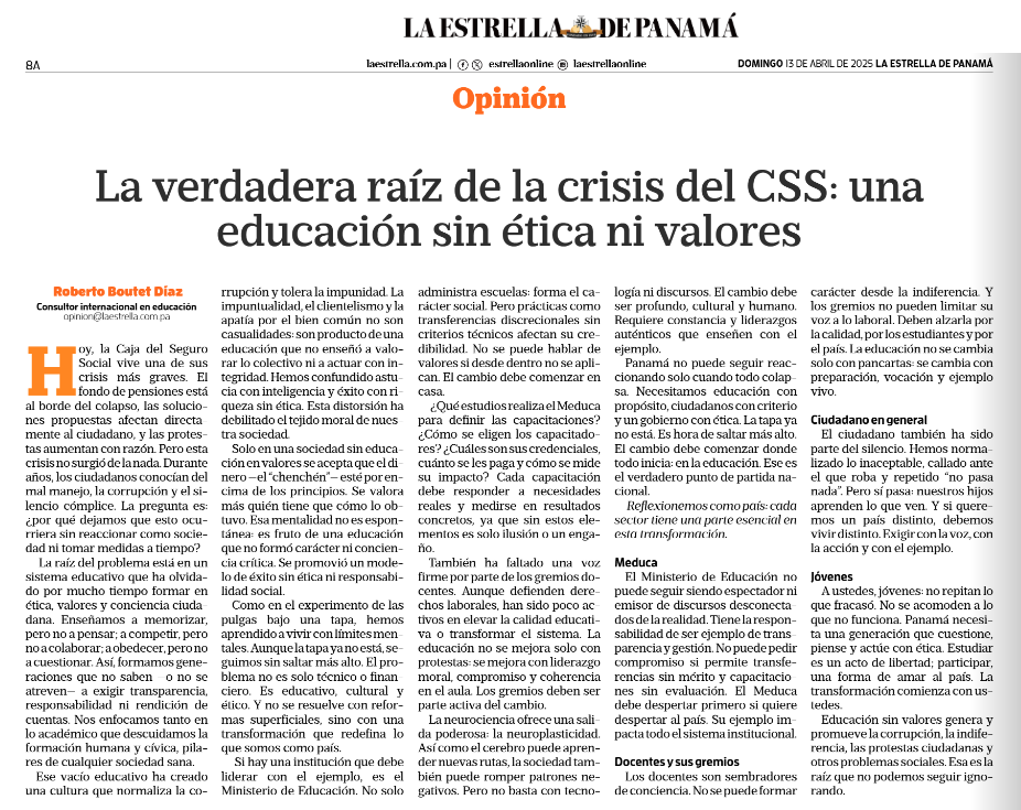 Diario. La Estrella de Panamá. Columna de Opinión. Publicado el 13 de abril de 2025.
