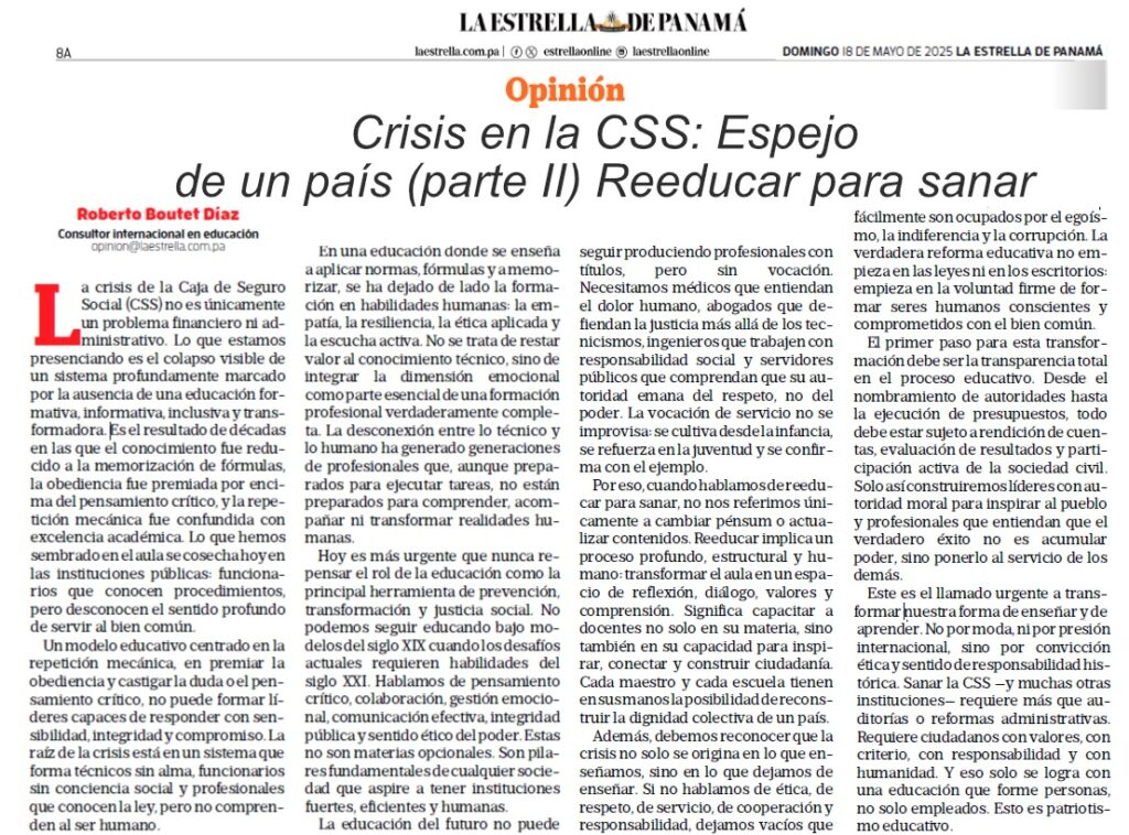 Diario. La Estrella de Panamá. Columna de Opinión. Publicado el 18 de mayo de 2025.