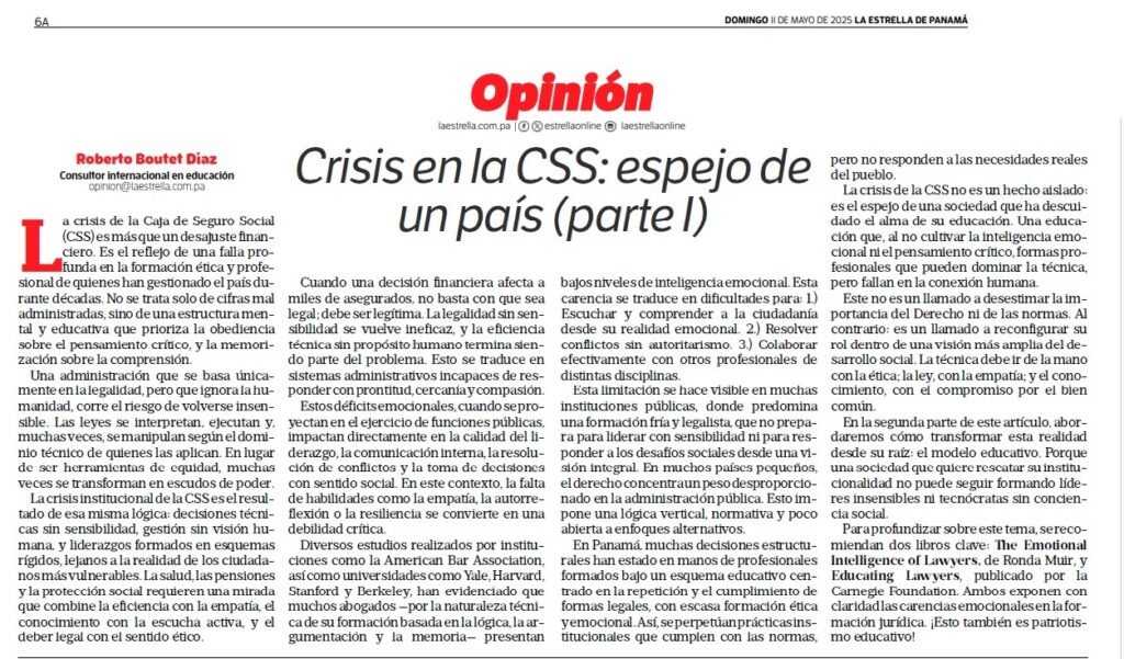 Diario. La Estrella de Panamá. Columna de Opinión. Publicado el 11 de mayo de 2025.