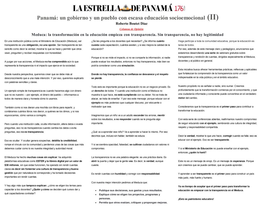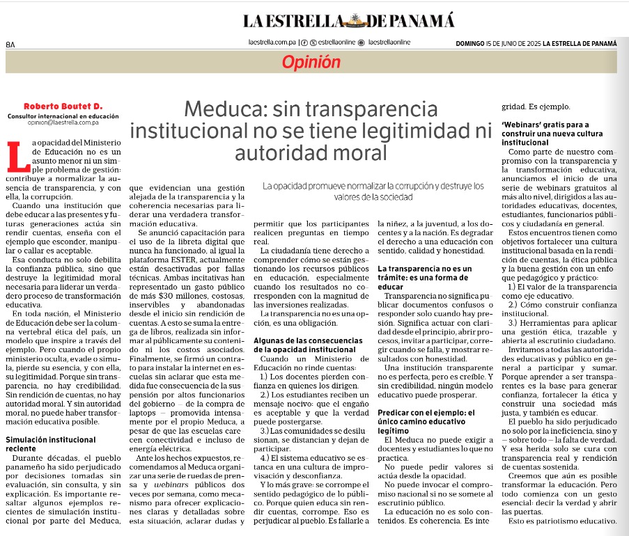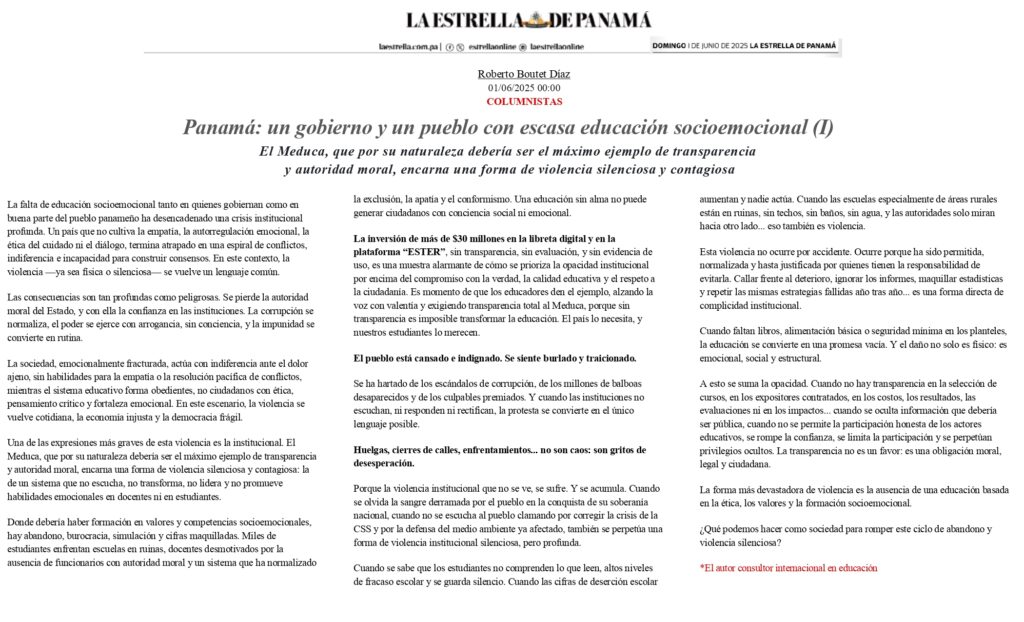Diario. La Estrella de Panamá. Columna de Opinión. Publicado el 1 de junio de 2025.